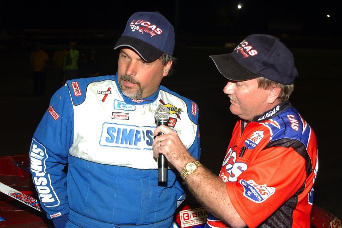 "It feels good to get a win here at Brownstown," said English in victory circle. "We've been coming here since 1989 and been close a couple of times, but just couldn't break through, with the competition here tonight it is really satisfying to win this race." "I don't think anybody had anything for Miller once he was in the lead, but that was a bad break for him and I guess good for us, but I just had to drive harder in the final laps cause I knew those two guys behind me (O'Neal and Erb), were coming on." "I want to thank Lucas Oil and everybody with this series, my crew, family, sponsors and of course, C.J. Rayburn, who is here tonight, I am glad to win for him as well."