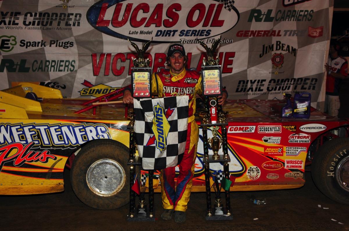 McCreadie would then set sail and go on to win the biggest race of his dirt late model career in his Coffey-McCreadie/Sweeteners Plus/Pro Power Racing Engines/Hoosier Tires/VP Racing Fuels/ Rocket Chassis Impala SS. In the Lucas Oil victory lane for the first time since his win at La Salle, IL back in May McCreadie was elated with his win. “I finally was able to get the monkey off my back and win one of these crown jewel races, we felt like we had the car several times to win one of these races and I finally was able to pull it off. ,” said McCreadie who captured the Chili Bowl Midget Race back in 2006. “I only had one crew man here this weekend (Al Stevens) and the car was just super, thanks to Rocket Chassis and Pro Power Engines, Bill (Schlieper) got me on his program a year or so ago and it paid dividends here tonight, the race track was super all night and thanks to all the fans for coming out this weekend.”