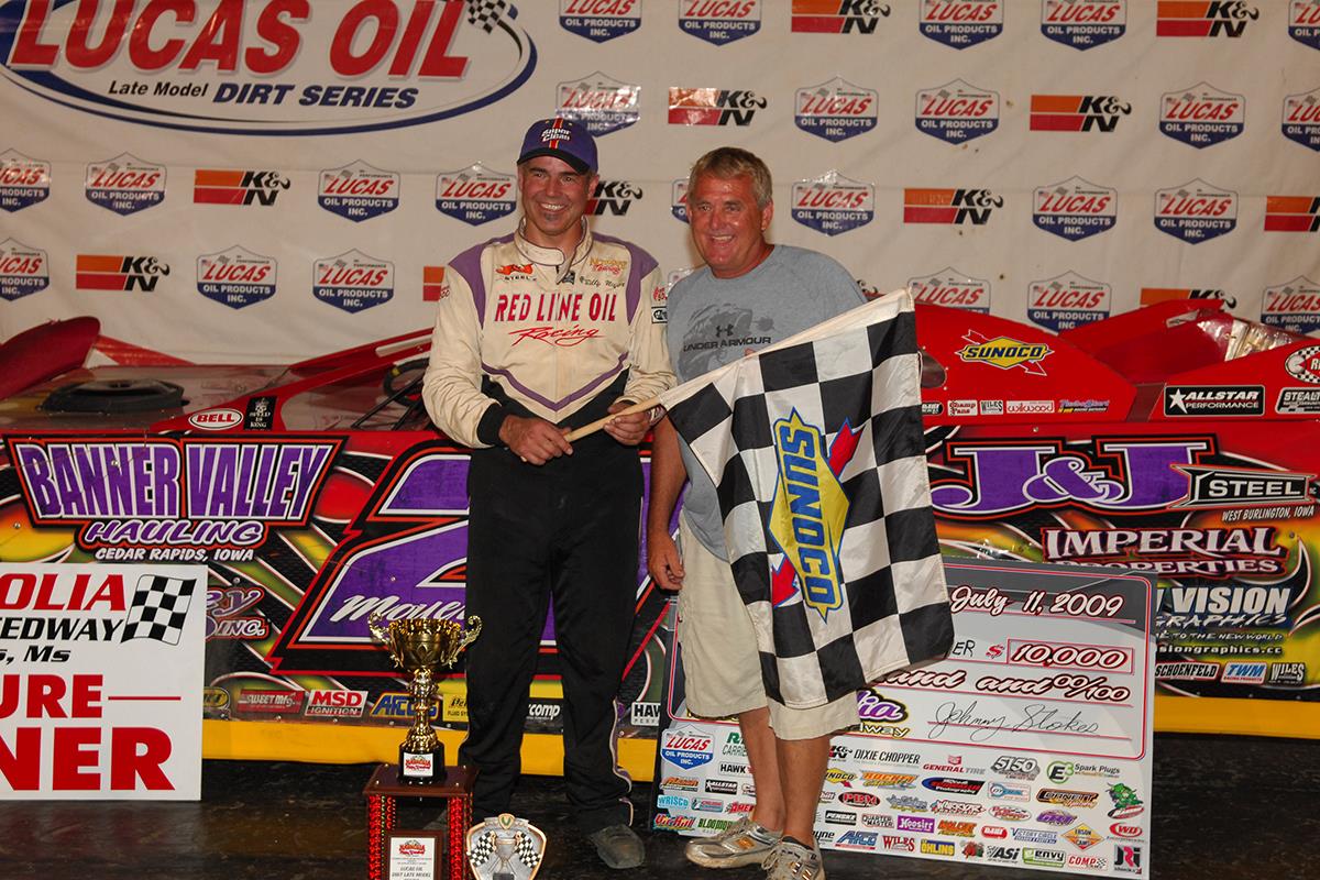 COLUMBUS, MS (July 11, 2009) – Billy Moyer of Batesville, AR took his second Lucas Oil Late Model Dirt Series win of 2009 as he won the Clash at the Mag on Saturday Night at Magnolia Motor Speedway. Moyer’s win was the 710th of his illustrious career. Moyer fought off a mid-race challenge from Earl Pearson Jr. of Jacksonville, FL and then a hard charging Chris Wall of Holden, LA for the victory in front of a packed grandstand. Wall, who started 14th, came on strong late in the race to finish second followed by Pearson, Jimmy Owens of Newport, TN; and Steve Casebolt of Richmond, IN.
