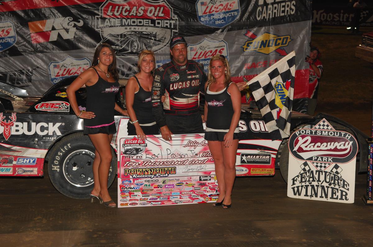 PORTSMOUTH, OH (July 4, 2010) – Four-time Lucas Oil Late Model Dirt Series National Champion, Earl Pearson Jr. of Jacksonville, FL took home his 22nd career series win in grabbing the $10,000 to win Independence 50 on Sunday Night at Portsmouth Raceway Park before a gigantic crowd. Pearson took the lead from Eddie Carrier Jr. of Salt Rock, WV on lap three. He went on to his fifth series win of the year. Series point’s leader, Scott Bloomquist of Mooresburg, TN was second followed by Ray Cook of Brasstown, NC; Steve Shaver of Vienna, WV; and John Blankenship of Williamson, WV.