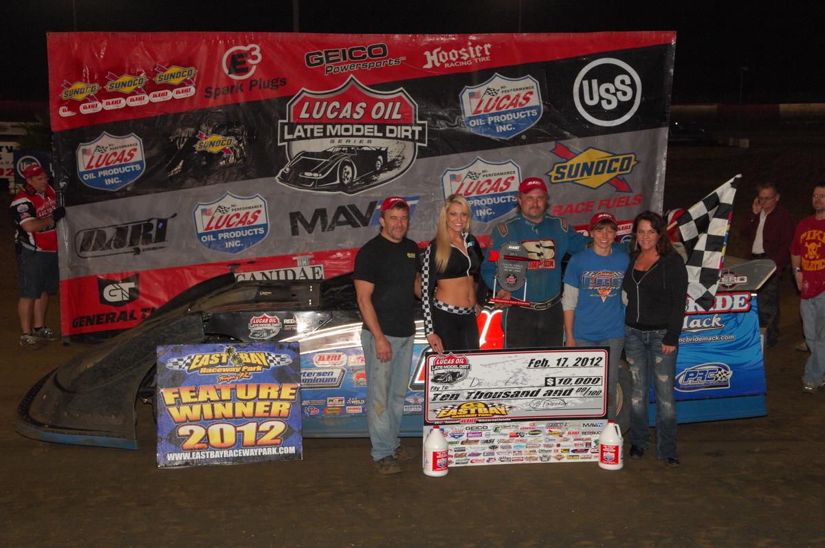 TAMPA, FL (February 17, 2012) – Battling back from an early caution, Dennis Erb Jr. of Carpentersville, IL had the fans on their feet as he captured Friday night’s exciting 50-lap DART Winternationals event. Erb took the lead on lap 48 and roared to the finish in the Lucas Oil Late Model Dirt Series-sanctioned race.
