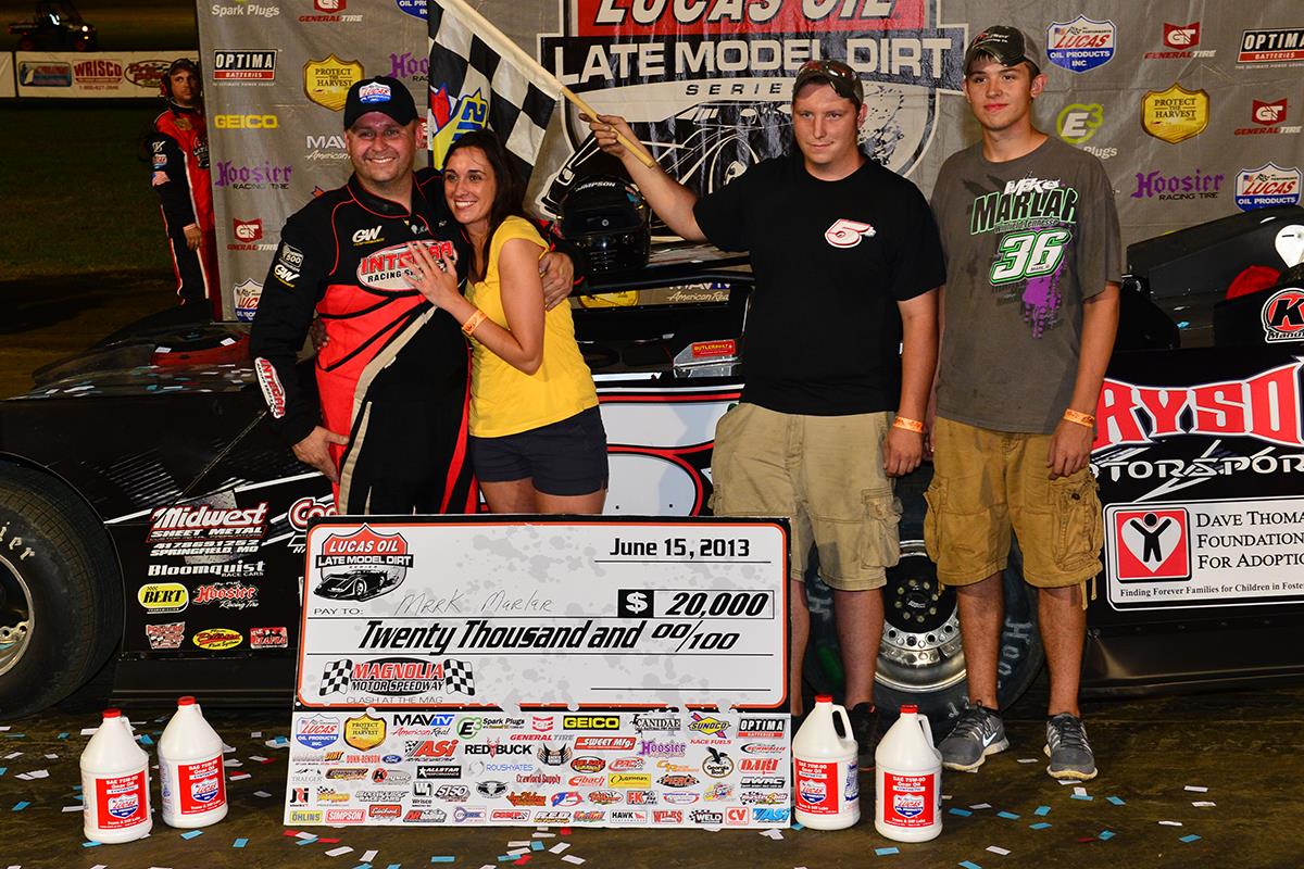 COLUMBUS, MS (June 15, 2013) - Mike Marlar overtook race leader, Don O'Neal with nine laps to go to take the $20,000 to win "Clash at the Mag" Presented by the Columbus Convention and Visitors Bureau on Saturday Night at Magnolia Motor Speedway. Marlar's first Lucas Oil Late Model Dirt Series win of the season was hard earned as a caution with 12 laps to go set up a great finish.