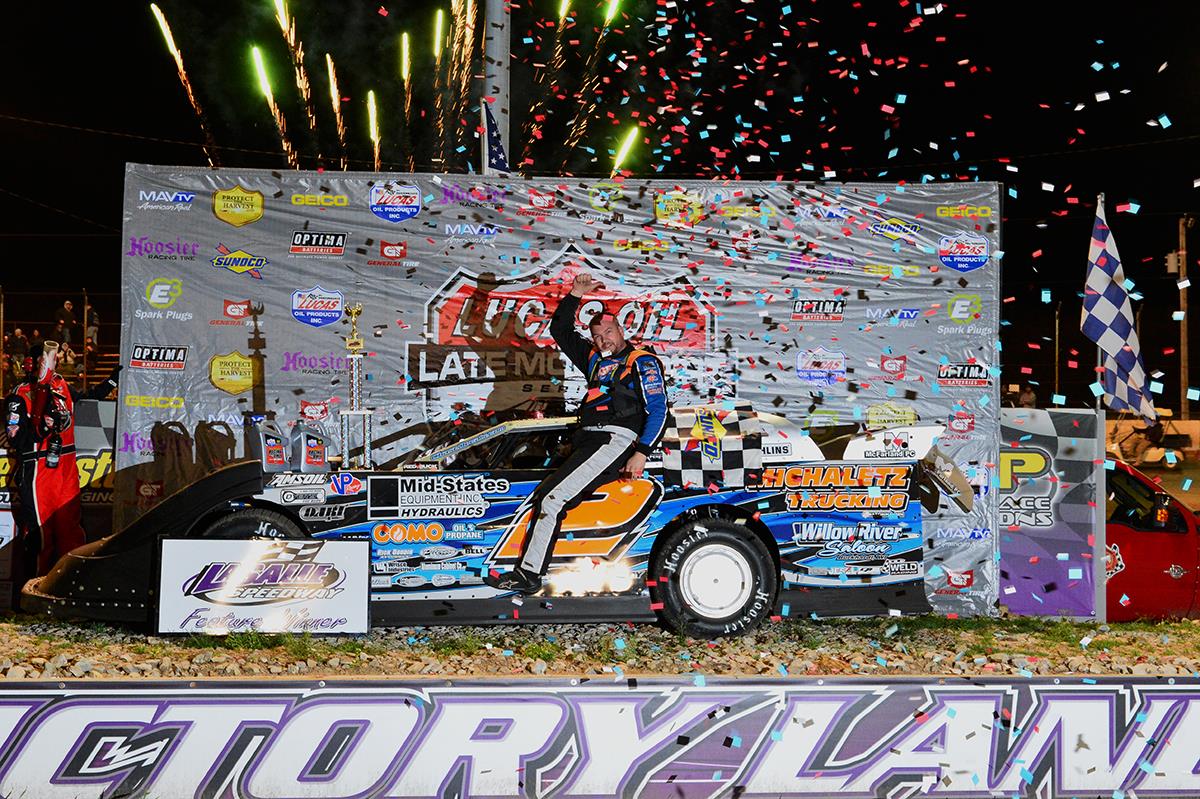 LA SALLE, IL (May 11, 2013) – Brady Smith edged out fellow Wisconsin driver, Jimmy Mars by just a few inches at LaSalle Speedway on Saturday Night in winning the Jeff’s Enginemasters Spring Shootout. It was Smith’s first Lucas Oil Late Model Dirt Series win since 2008.