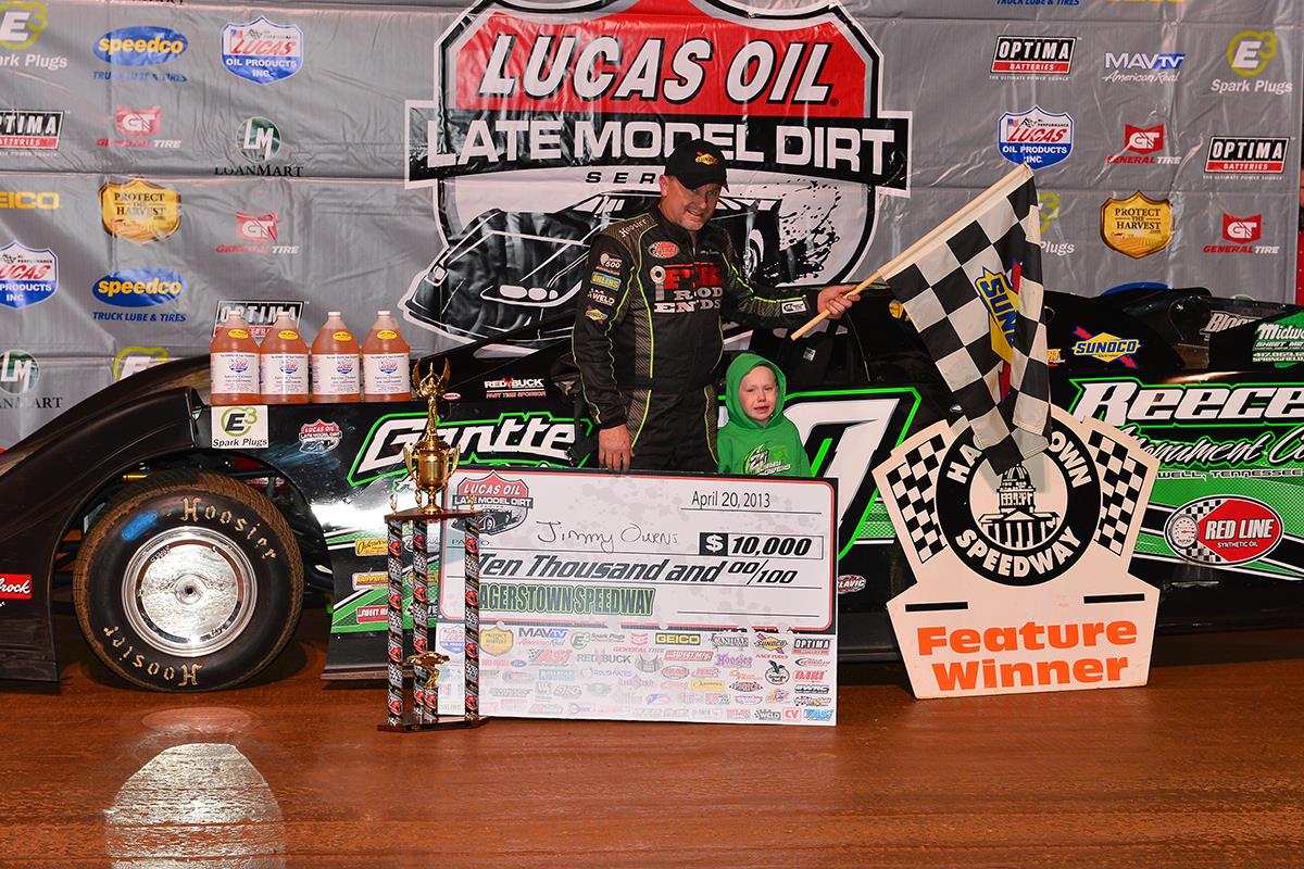 HAGERSTOWN, MD (April 20, 2013) – Jimmy Owens won his second consecutive Lucas Oil Late Model Dirt Series sanctioned event Saturday night at Hagerstown Speedway.
