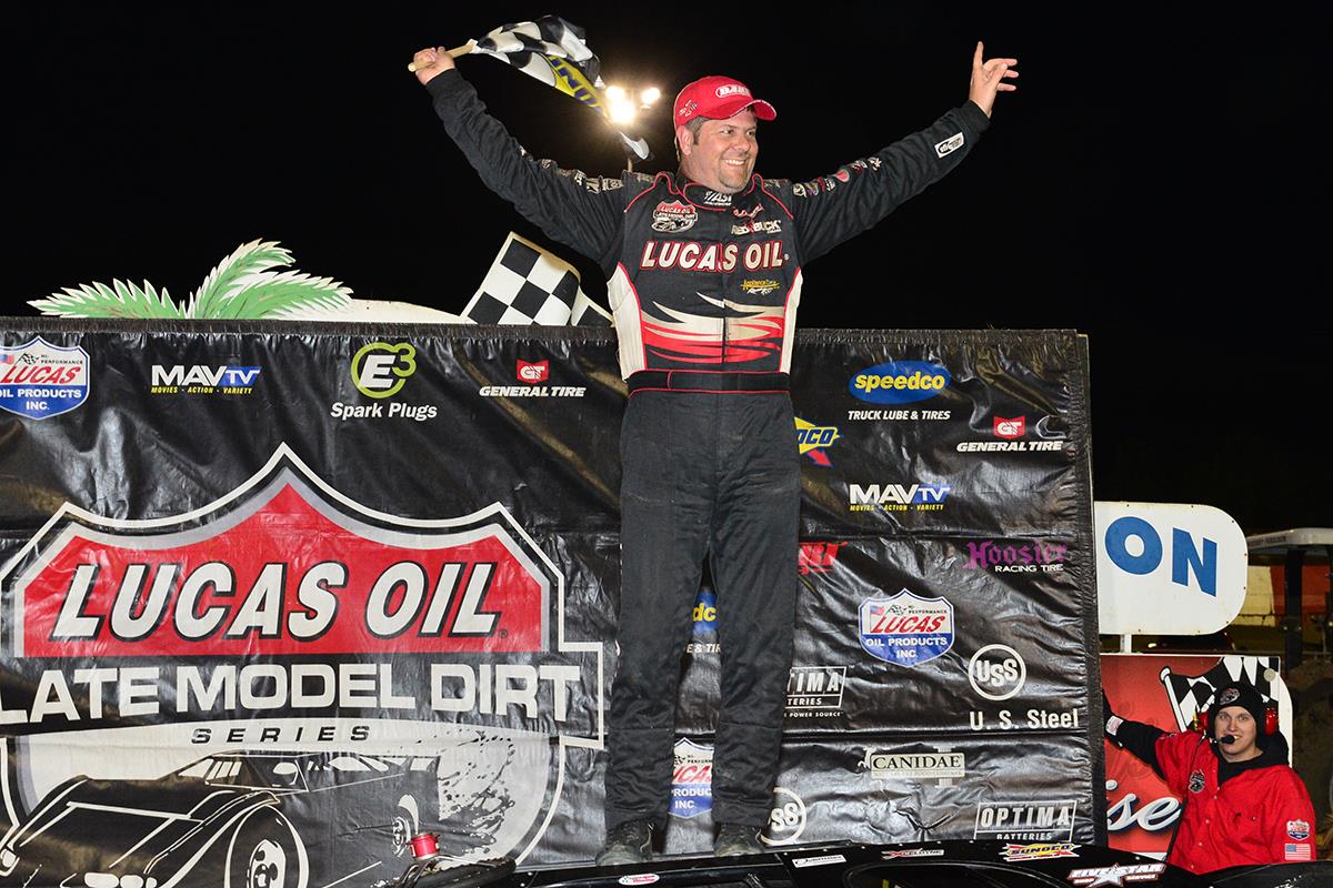 Driving for NASCAR’s Bobby Labonte, Pearson took the Lucas Oil Products and MAVTV sponsored Longhorn Chassis Chevrolet to Lucas Oil Victory Lane for the first time since July of 2010 at Tri-City (IL) Speedway. “It’s been a longtime, no doubt,” said the 4-time series champion who was all smiles from ear-to-ear. “This deal with Kevin Rumley came together just a few months ago and we have come out of the box running much better! I have to thank Steve Shaver, he was my crew chief this week, and everybody at Lucas Oil and MAVTV for their support! It feels great to be back in victory lane!”