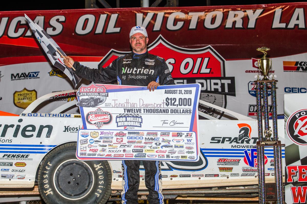 PORTSMOUTH, Ohio (August 31, 2019) - Jonathan Davenport went to Victory Lane for the twelfth time in 2019 on Saturday night at Portsmouth Raceway Park.