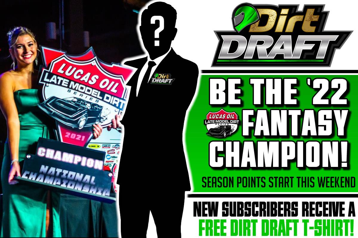 If you haven’t subscribed to Dirt Draft yet, now is the perfect time. New Dirt Draft subscribers are receiving a free Dirt Draft/Lucas Oil Late Model Dirt Series t-shirt. For more information regarding Dirt Draft, visit DirtDraft.com or download the DirtDraft app. Also, be sure to follow along on social media for the latest news and updates via Twitter @DirtDraft and Facebook.com/DirtDraftFantasyRacing