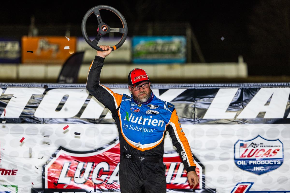 CHILLICOTHE, OH (March 24, 2024) – Jonathan Davenport was the driver to beat on Sunday night at Atomic Speedway as he made a clean sweep of the Lucas Oil Late Model Dirt Series program.