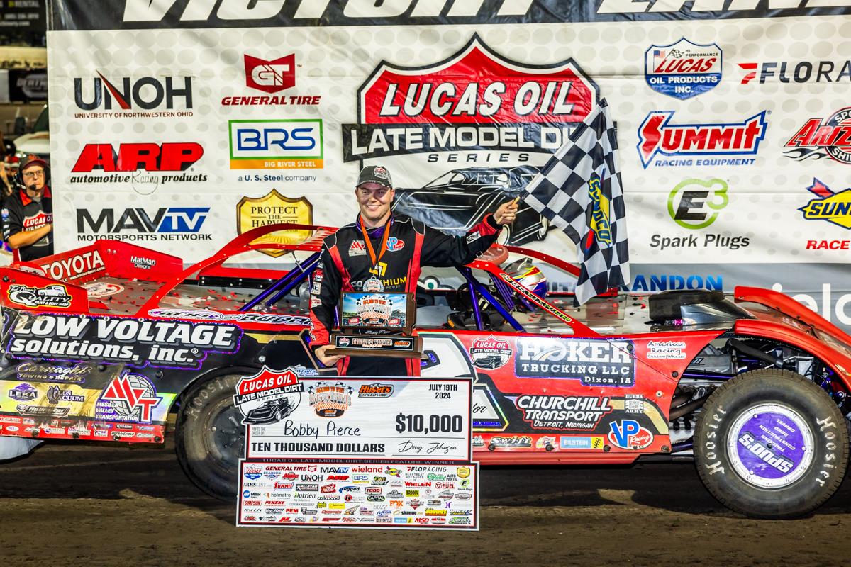 BRANDON, SD (July 19, 2024) – Bobby Pierce held off a hard-charging Devin Moran in the final laps to win back-to-back with the Lucas Oil Late Model Dirt Series at Huset’s Speedway. Pierce was in control from the start of Friday’s 40-lap main event but a stumble in turn four allowed Moran to close in the final laps.