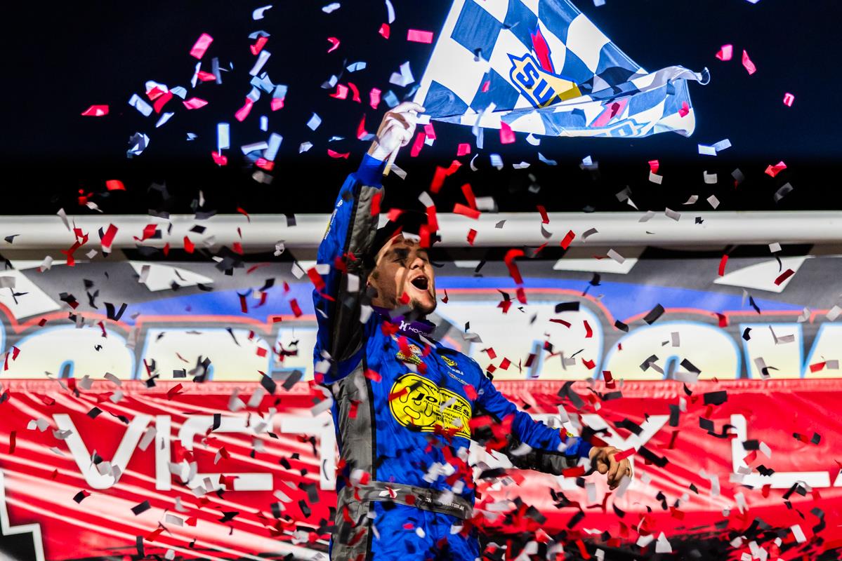 “What a race car that was. I told the guys when we got here earlier that I felt like the race would be won around the middle. We just kept working to get a little better there in the heat race, those last couple of laps. I was fortunate enough to be able to move around a little bit and figure out what we needed to run. Obviously, those yellows helped me big time. I don’t think JD knew how good the bottom was getting into three,” said the Chandler, Arizona driver.